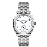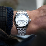The Brunswick 38 Polar White can also be fitted to a bespoke stainless steel 5-link bracelet with expertly brushed and polished links.