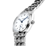 Featuring solid screw links, the bracelet has a substantial feel while the silky-smooth movement of the links ensure a comfortable fit around the wrist. The bracelet can be micro-adjusted with both the 8 mm and 6 mm links provided, ensuring a perfect fit. The bracelet is secured to the wrist using a trigger-release butterfly style clasp with the Bristol flower enamelled discreetly inside the blades.
