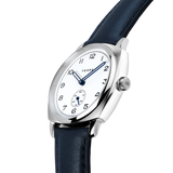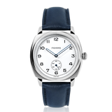 The Brunswick 38 Polar White is fitted with a handmade Fears Blue strap crafted from Barenia leather with tonal stitching, lending a classic yet contemporary feel to the watch.