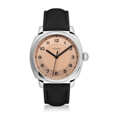 Each Brunswick 40 Copper Salmon can be fitted with a handmade Raven Black strap crafted from Buffalo leather (sourced from the Himalayas), lending a more sophisticated feel to the watch. This premium leather is some of the strongest and most durable available which makes it perfect for our sportier Brunswick.