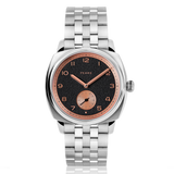 The Brunswick 38 'Charcoal Rose' is also available to purchase with Fears bespoke stainless steel 5-link bracelet.