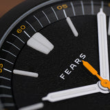 The Redcliff 39.5 'ES' features one of the most complex dials Fears have ever produced. Expertly made in Germany, this multi-level dial with an steeply angled rehaut and sunken central section finished in a carbon black anti-glare texture with white and orange printing.