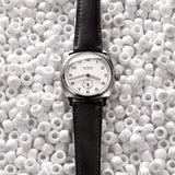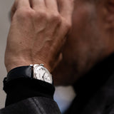 The Brunswick White features a hand-polished white lacquer dial, expertly made in Germany by one of the world’s finest dial makers. After the layers of white lacquer are applied, multiple layers of crisp black ink bring the dial to life using a numeral set first used by Fears in 1946.