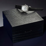 The Brunswick White is presented in a bespoke wooden box, crafted in Britain from English Ash, which is stained Fears Blue. Lined in genuine cream suede, the watch sits proudly on a special cushion. With minimal branding, the outside of the lid reveals a hidden map of Brunswick Square when held in a certain light.