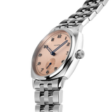 - Dial: Salmon colour, with black printing and hand applied numerals