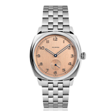 The Brunswick 38 Copper Salmon features a dial similar to those used on special Fears watches in the 1940s and 50s. This rich tone is created using galvanic coatings of 18ct rose gold and copper.