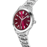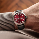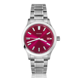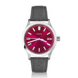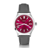 - Dial: Cherry red, sunburst, white printing with coral pink accents