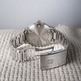 Featuring solid screw links, the bracelet combines brushed and polished elements and has a substantial feel while the silky-smooth movement of the links ensure a comfortable fit around the wrist. The bracelet can be adjusted for a perfect fit with both 6mm and 8mm screw links but also adjusted 'on the move' via a push button micro-adjustment featured located within the trigger-release fold-over clasp. This ensures a comfortable fit always.