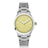 The Redcliff 39.5 Sherbert Yellow can also be fitted to a bespoke stainless steel 3-link bracelet with expertly brushed and polished links.